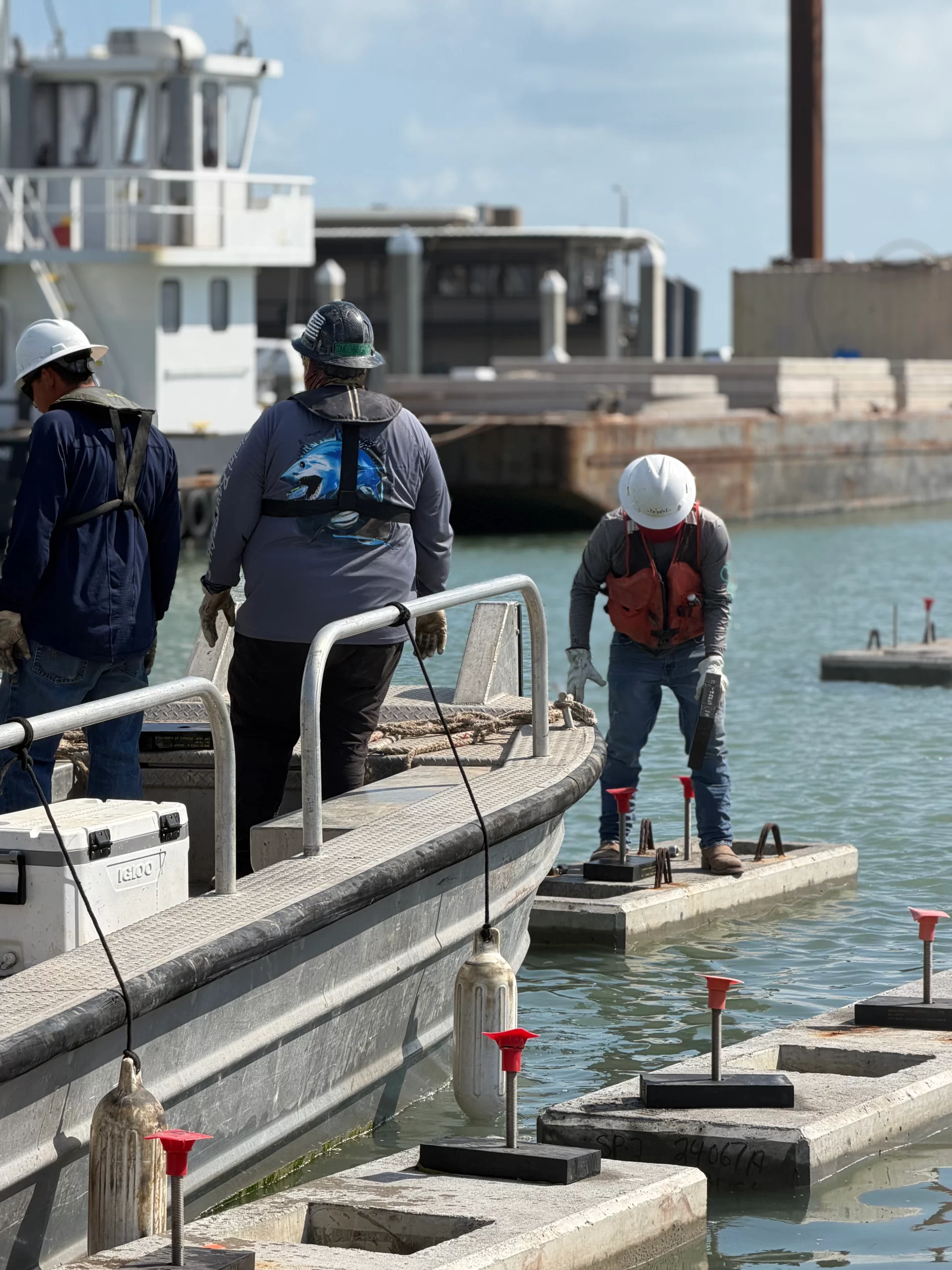 Our team offers marine construction solutions built for the conditions of the Texas Gulf Coast. From piers and bulkheads to loading docks and shoreline protection, our work supports industries that rely on strong infrastructure and precise execution. Based in Gregory, we bring decades of marine construction expertise to every project, above and below the waterline.