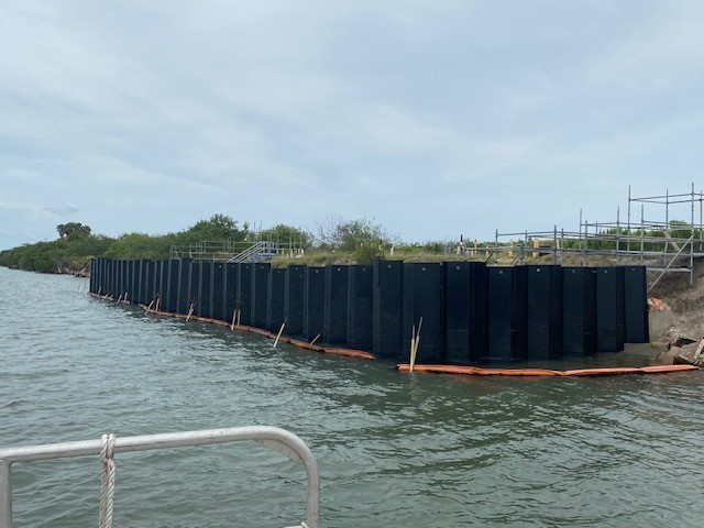 In April of 2023, through competitivity sealed bids, SR Trident, Inc. was selected for the reconstruction of the city’s seawall. Upon notice to proceed SR Trident began consulting with Seadrift’s Engineer of Record and the City Mayor to plan the sequencing of construction, any construction restraints the city may have, and the effects the construction would have on the city.
