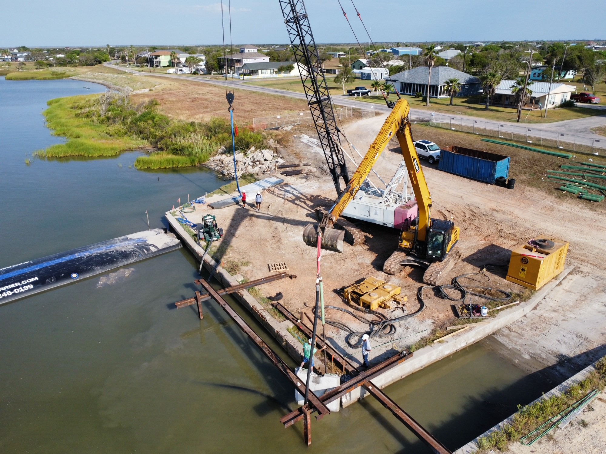 These obstacles proved minimal in comparison to the sheer nature of South Texas weather. SR Trident encountered multiple major weather events, including but not limited to Tropical Storm Alberto and Hurricane Beryl. These storms brought rainfall, tropical storm force winds and storm surge; all of which wreaked havoc on the jobsite, as well as the city of Seadrift. These intense storms caused delays in multiple facets of the construction. With these delays, SR Trident saw an opportunity to give back to the community and used its resources and manpower to assist the citizens of Seadrift with cleanup efforts. Although delays out of SR Trident’s control became a regular occurrence, with proactive planning and close collaboration with the Engineer of Record, SR Trident was able to mitigate and keep the impacted overall schedule affects to a minimum.